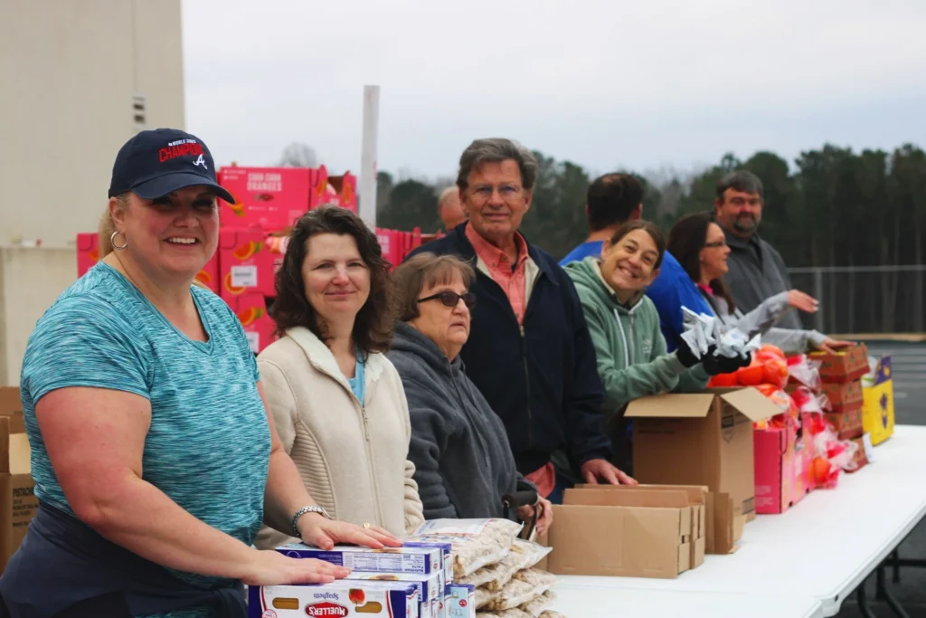 During these events, volunteers distribute approximately 40,000 pounds of food to families in a single morning. Participants remain in their vehicles while volunteers load food directly into cars.