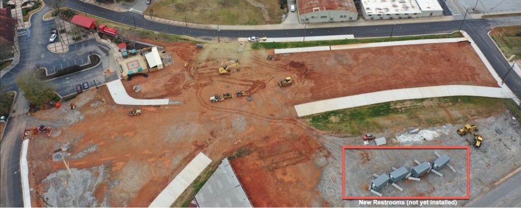 The park and amphitheater will feature full ADA access, with handicap parking planned for the depot lot near the splash pad and a completed concrete path leading directly into the park.