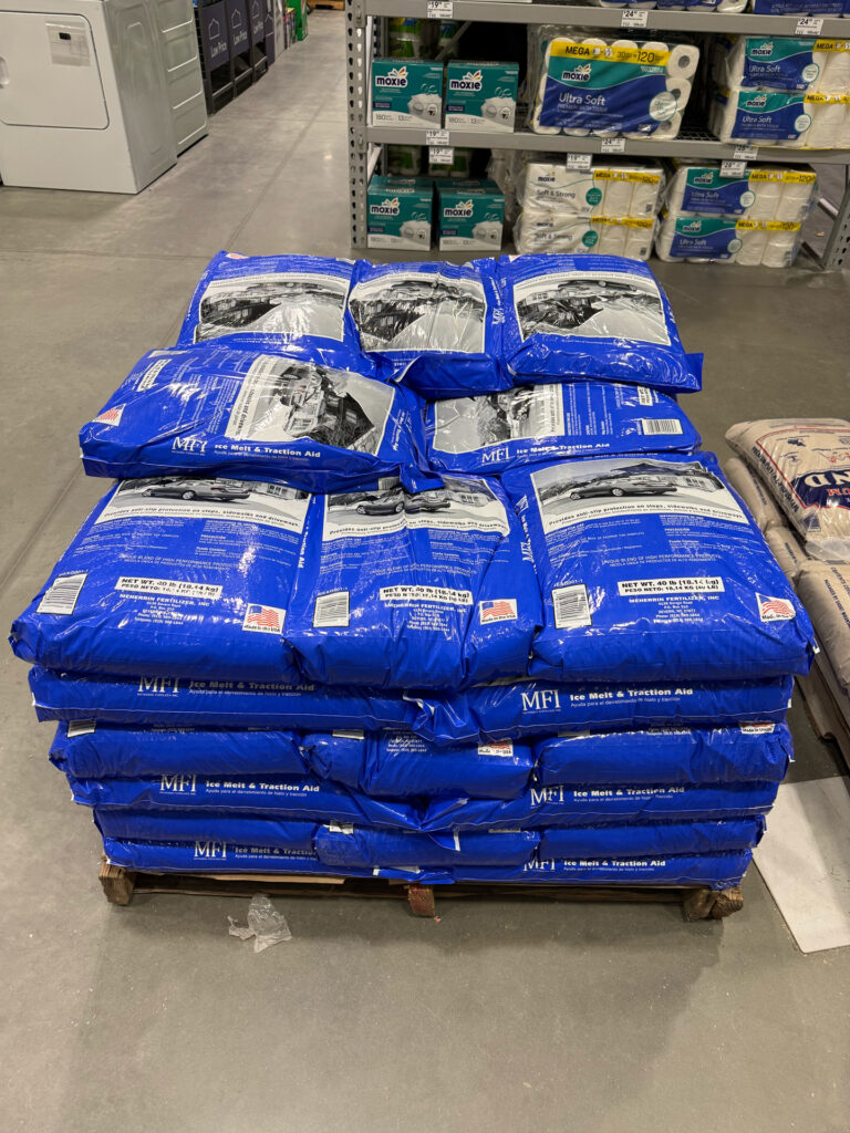 Pallets of ice melt at Lowe’s/Photo Habersham News