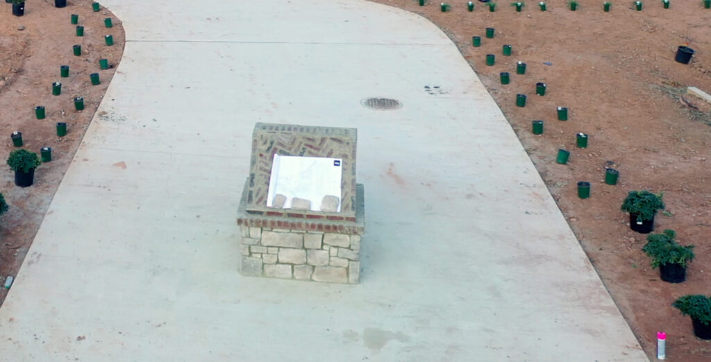 A plaque honoring the park’s namesake is also nearing completion, with stonework finished at the entrance to the amphitheater that will greet visitors who come to enjoy concerts, community events and other gatherings.