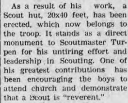 Not long after that first Eagle Scout milestone, Troop 24 gained a permanent home of its own. In 1954, Scoutmaster Bob Turpen led the effort to build a Scout Hut measuring 20 feet by 40 feet. The hut served as more than a meeting space — it became a lasting monument to Turpen’s dedication to the troop and his emphasis on character, service, and the Scouting value of reverence. The effort to build the scout hut, along with numerous other achievements led to a Silver Beaver award for Turpen.