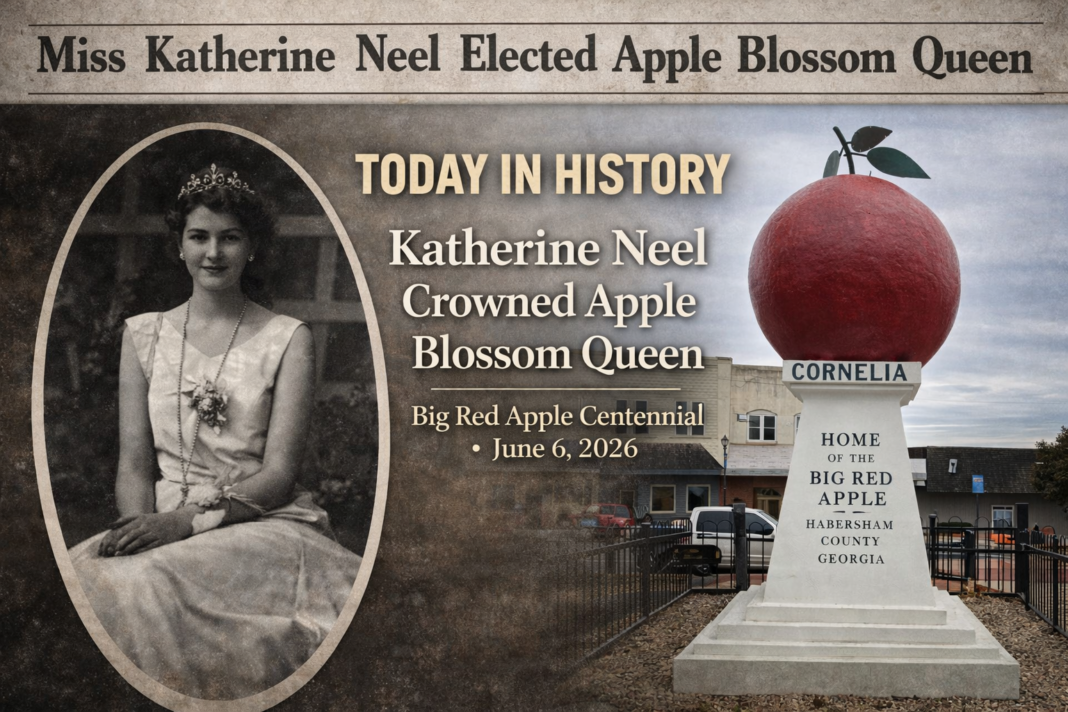 On this day in 1930, Cornelia’s deep-rooted connection to Georgia’s apple industry was on full display as Miss Katherine Neel was crowned queen of the Apple Blossom Festival—one of the region’s most celebrated events of the era.